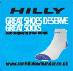 I met Ron Hill pre 1986 London Marathon - Ron is a true legend! This meeting encouraged me to try "Hilly Socks" some 25 years later. I'm particularly impressed with the Mono Skins and can honestly say they're the best fitting sock I've ever worn. Hilly Socks are professionally made with comfort second to none!